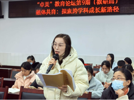 论坛现场气氛热烈而浓厚,与会教师们早早到场,满怀期待地投入到这场教研中。体育组教师结合教学实践,生动讲述打破学科边界、实现融合育人的探索历程与深刻思考,一个个鲜活的教学案例、一项项创新的融合举措,为跨学科融合教学提供了生动范本。