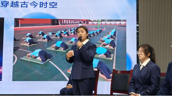 想象联通,激活身体无限可能。 吴春英老师则聚焦《仰卧推起成桥》这一技巧课,带来了“搭建穿越古今的彩虹桥”的融合教学构想。她以党建引领美育发展为抓手,引导学生展开情景想象,将身体练习与美学意境、历史畅想相结合,让枯燥的技巧训练变得充满诗意与创造力,充分践行了“五育并举”的育人要求。
