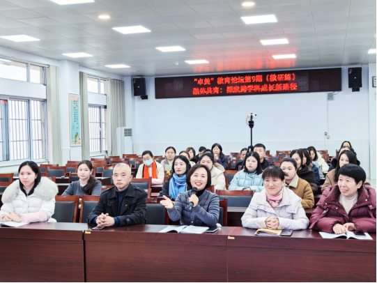 为进一步深化课程改革,推动学科融合创新,2025年12月19日上午,濮阳市油田第二小学教育集团第九期“卓美”教育论坛(教研篇)成功举办。本期论坛以“融体共育,探索跨学科成长新路径”为主题,聚焦体育学科与德育、美育、数学、科技等多学科深度融合,学校党支部书记、校长李桂荣及领导班子成员,各学科教师齐聚一堂,在教师的实践分享与跨学科交流中,呈现了一场思想碰撞、智慧共生的教研盛宴。