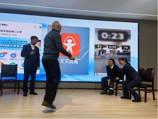 科技赋能,智慧拓展教学边界。 王成老师重点介绍了利用AI数字化教学APP辅助教学的实践,包括动作分析、个性化指导及家庭体育作业的智能布置与反馈。分享过程中,与会老师上台进行了现场体验,直观感受科技为体育教学带来的精准化与个性化变革。