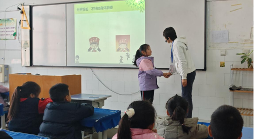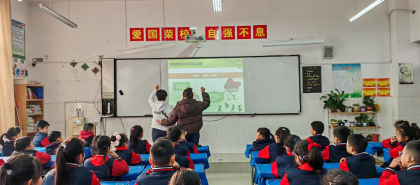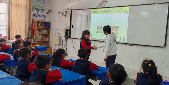 课堂上,史老师和杨老师紧扣儿童认知特点,围绕“认识身体隐私部位”“分辨安全与危险的身体接触”“遭遇侵害时的自救方法”等核心知识点展开教学。借助PPT动画、情景模拟、现场互动等形式,史老师引导学生主动举手回答问题、参与角色扮演,孩子们在轻松的氛围中掌握了“拒绝、逃离、告诉”的防性侵口诀。在“分辨好与不好的身体触碰”环节,史老师和杨老师还邀请学生上台互动演示,让抽象的安全知识变得直观易懂。