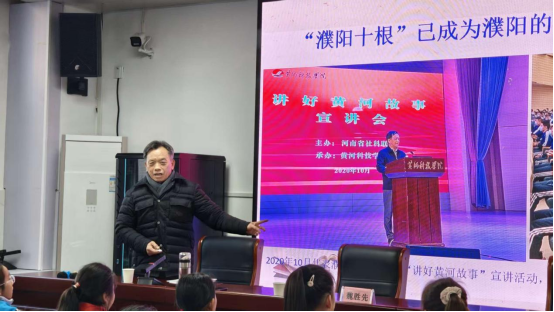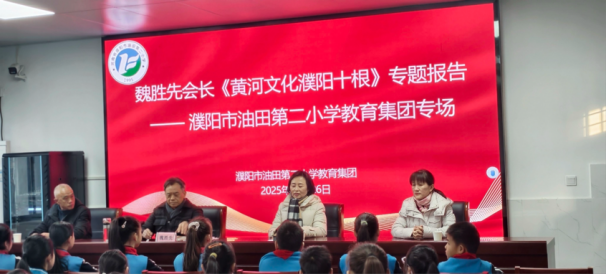 在热烈的掌声中,魏胜先会长开启了别样的大课堂。他以通俗易懂、生动有趣的方式,对“濮阳十根”文化进行了逐一讲解。从“龙文化”的起源到颛顼帝舜的古都文化,从仓颉造字的文字根脉到《诗经·卫风》的诗歌传统,从孝道故事到戏曲艺术,魏会长用一个个鲜活的案例、一段段有趣的故事,带领学生走进濮阳深厚的历史文化长河。