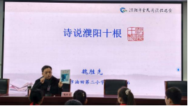 在讲解每一根文化之后,魏会长还带领学生齐声诵读他为“濮阳十根文化”十首原创诗歌。朗朗的读书声在会场回响,孩子们在诵读中感受文字之美,体会文化之韵。