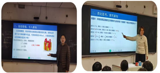 1月4日下午,濮阳市实验中学七年级武丹丹、白凤茹两位教师以“同课同构”方式展示《立方根》教学。数学教研组全体成员全程参与听课,并以年级组为单位交流后,再开展评课研讨。本次教学两位老师以相同的教学目标、相似的教学环节,却在细节处折射出对新课标的不同理解。精心设计的课生动诠释了新课标下“教师主导、学生主体”的课堂样态。
