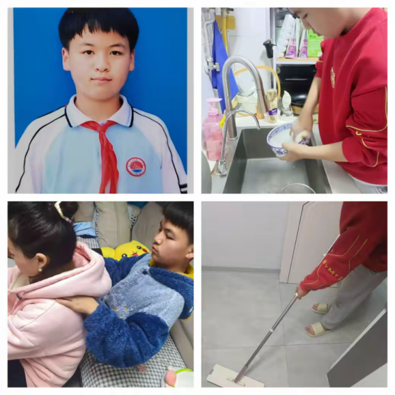 在生活中,他始终将孝顺落在实处:每天坚持完成至少五件家务,时刻留意家人的身体状况。妈妈感冒时,他立刻端来热水、递上药物;奶奶不慎滑倒受伤,他第一时间给爷爷打电话求助,还拿出随身的卫生纸为奶奶处理伤口。此外,他每天都会抽出时间和家人交流日常见闻,用陪伴为家庭增添温暖。