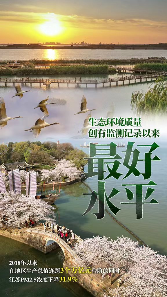 看得见星空、闻得到花香,绿色是高质量发展的底色、高品质生活的成色。2018年以来,在地区生产总值连跨3个万亿元台阶的同时,江苏PM2.5浓度下降31.9%,2022年空气质量优良天数比率达79.0%,生态环境质量创有监测记录以来最好水平。