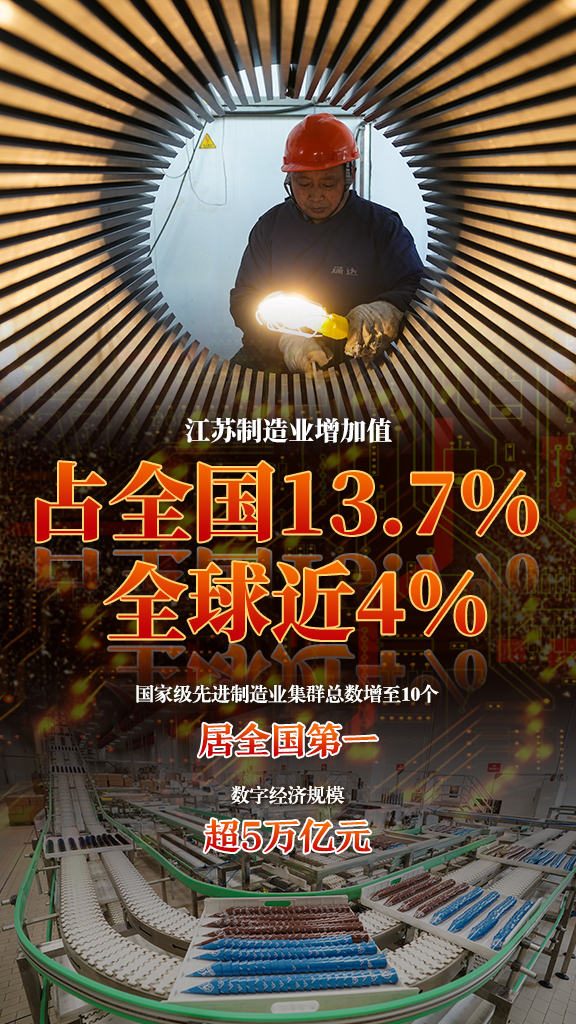 既“强筋壮骨”,又“脱胎换骨”。抢抓数字经济关键增量,江苏加速数实融合,推动实体经济全方位、全过程、全链条、全要素提升。目前,全省累计建成智能制造示范工厂138家、智能车间1979家,“上云”企业近40万家,数字经济规模超5万亿元。