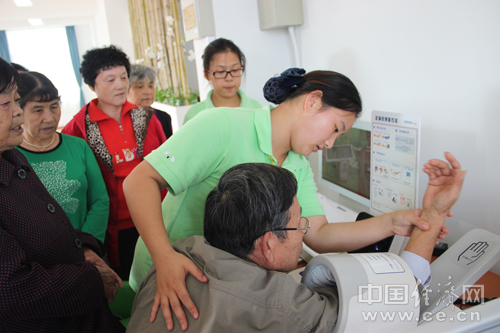 老人在居家养老服务照料中心可以免费测量并记录血压