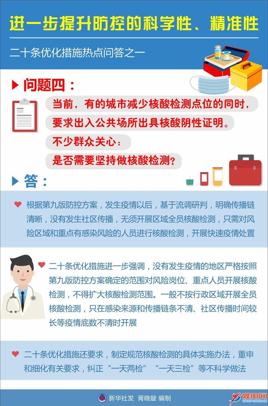 问题四:当前,有的城市减少核酸检测点位的同时,要求出入公共场所出具核酸阴性证明。不少群众关心:是否需要坚持做核酸检测?