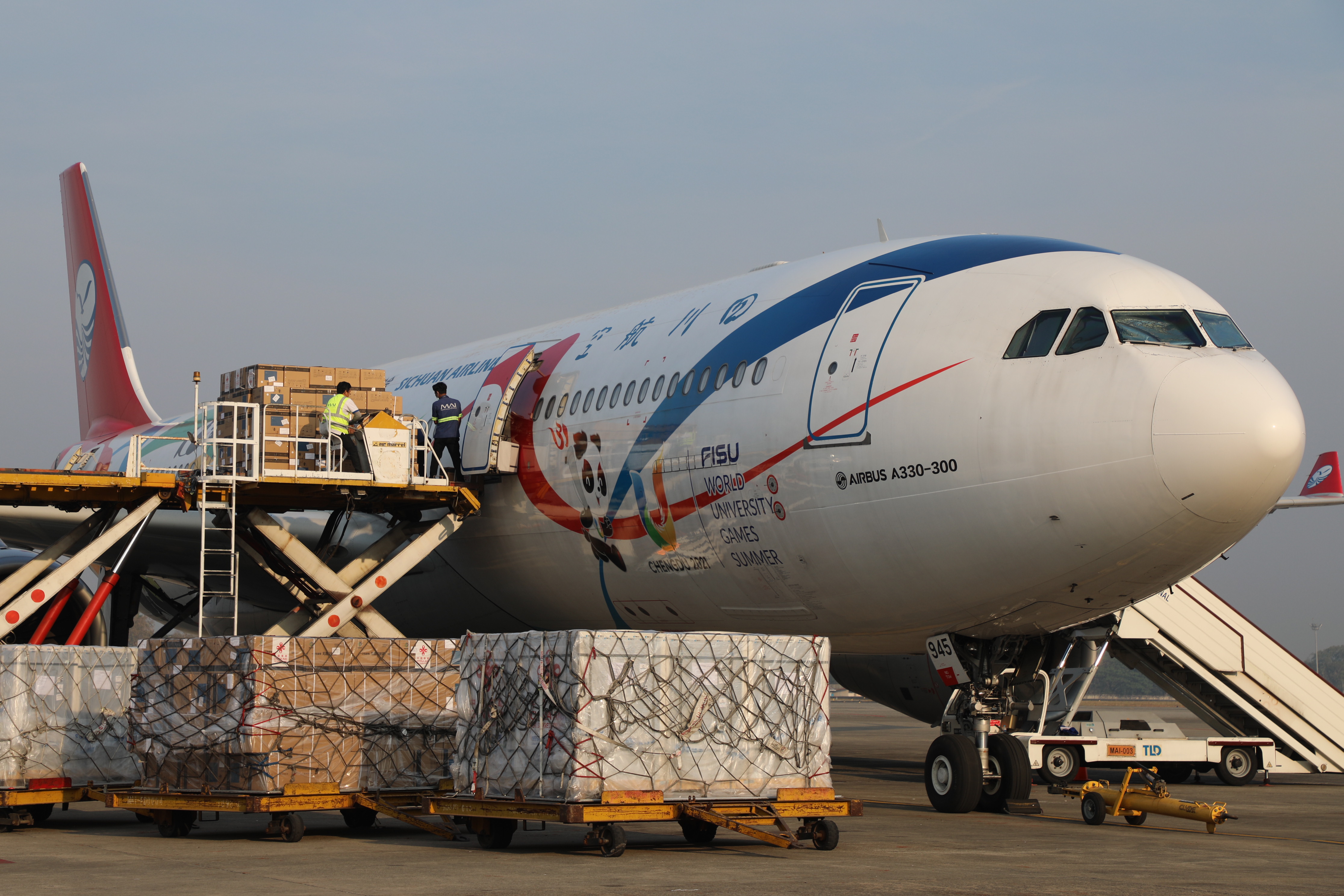 这是2023年1月19日在缅甸仰光国际机场拍摄的中国政府援助缅甸的新冠疫苗。新华社发(中国驻缅甸使馆供图)