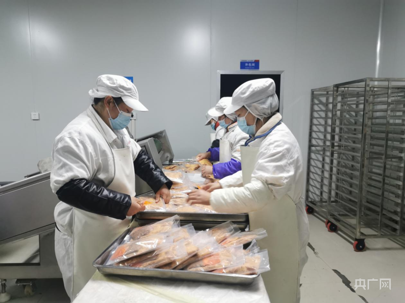 工人们在车间制作预制菜“孜然羊肉”(央广网发 姬娴祎 摄)