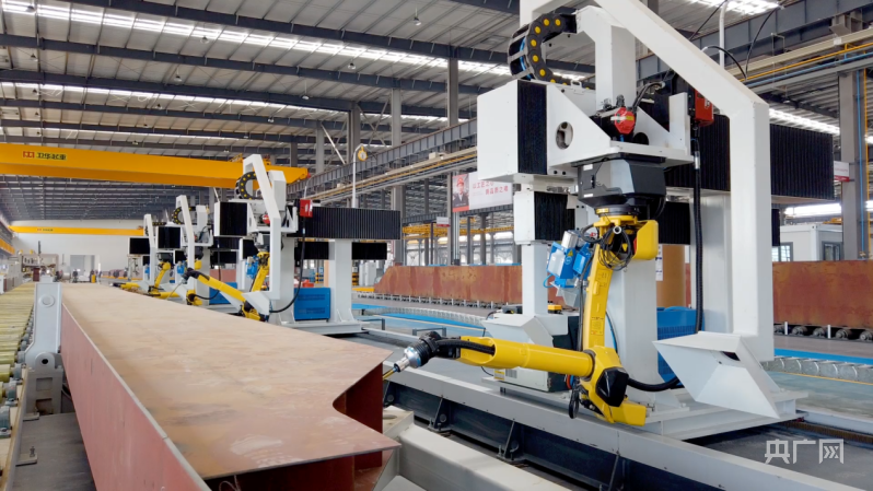 自动焊接机器人正在焊接起重机梁盒内缝(央广网发 姬娴祎 摄)