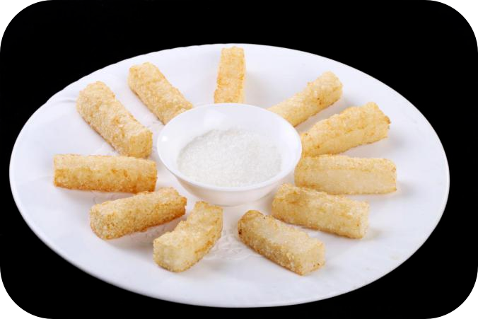 信阳当地的一道传统风味小吃,以豫南特产红薯粉条为主料精心煎制而成。其色泽金黄、皮薄馅多、软糯爽口,也是早餐的不错选择。
