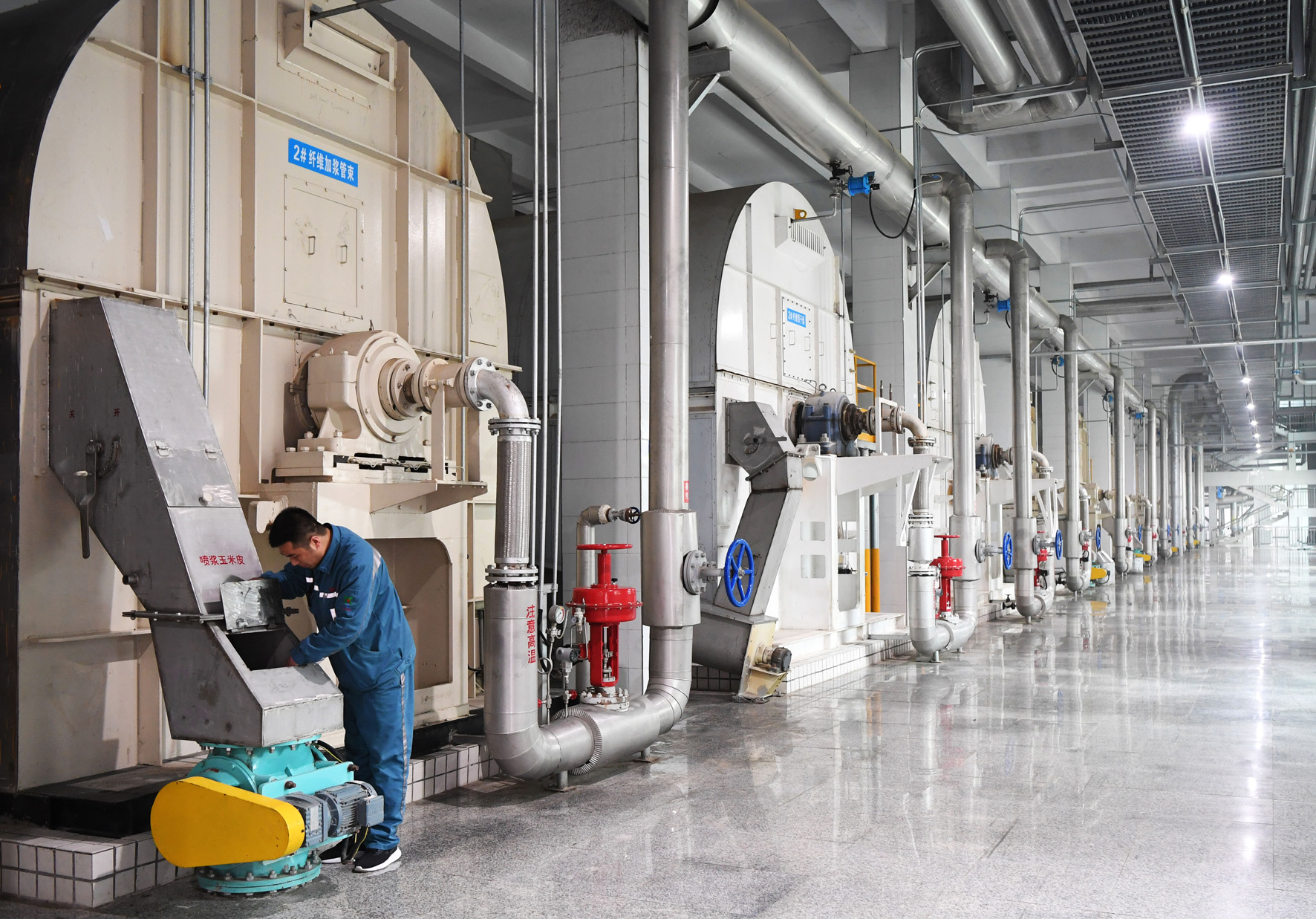 3月22日,在河南金玉锋生物科技有限公司的生产车间,工作人员在检查玉米加工设备运行情况。在驻马店金玉锋公司,8个巨型玉米筒仓矗立在厂区内,每个仓装有1.2万吨玉米,空中管道将筒仓与淀粉、玉米油等车间相连,封闭运行。工厂一天消纳6000吨玉米,每天有200多辆满载玉米的半挂车送货到此。