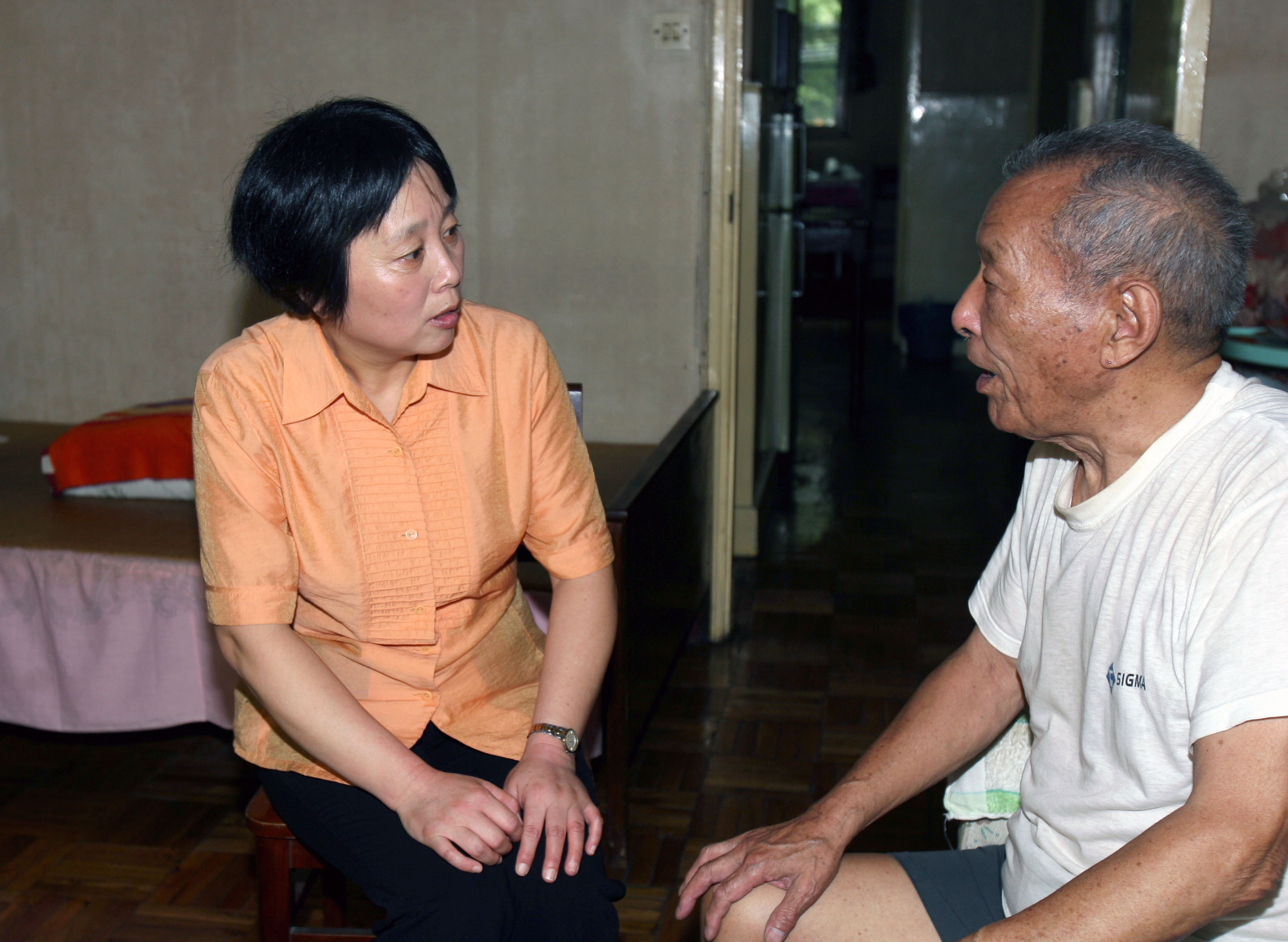 朱国萍(左)在虹储居民区的居民家中巡访(2007年9月26日摄)。新华社记者 刘颖 摄