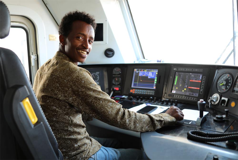 2022年9月19日,在亚吉铁路吉布提那噶德站,一名司机在列车内做发车前的准备。新华社记者 董江辉 摄