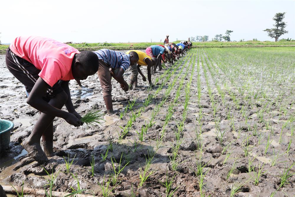 2022年10月29日,在布隆迪布班扎省基航加县,农民种植杂交水稻。新华社记者 董江辉 摄
