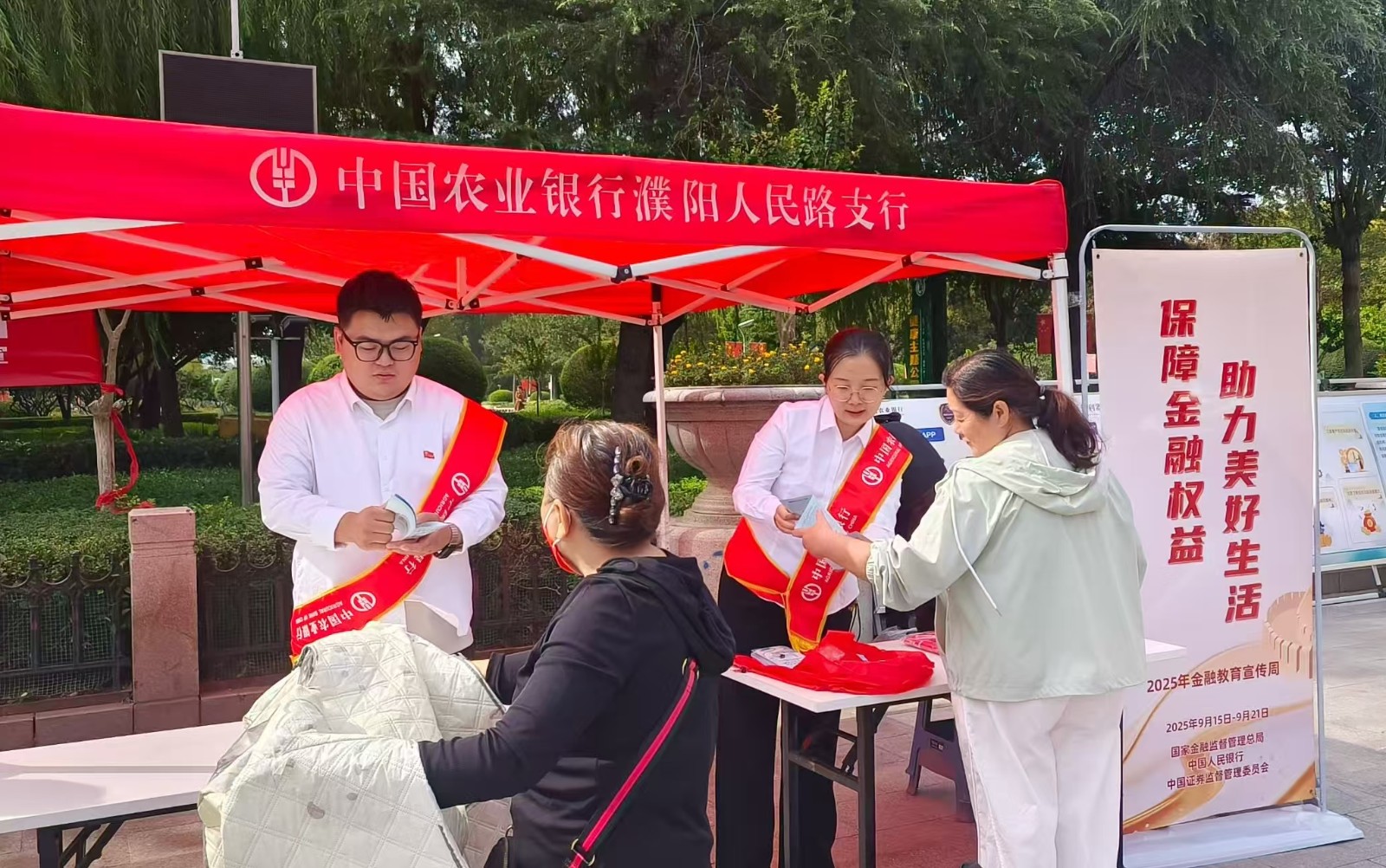 9月15日至21日,为认真贯彻落实《关于开展2025年金融教育宣传周活动的通知》各项要求,农行濮阳分行紧紧围绕“保障金融权益 助力美好生活”主题,组织开展一系列形式多样、内容丰富的金融知识宣传教育活动,切实提升社会公众金融素养和风险防范能力。