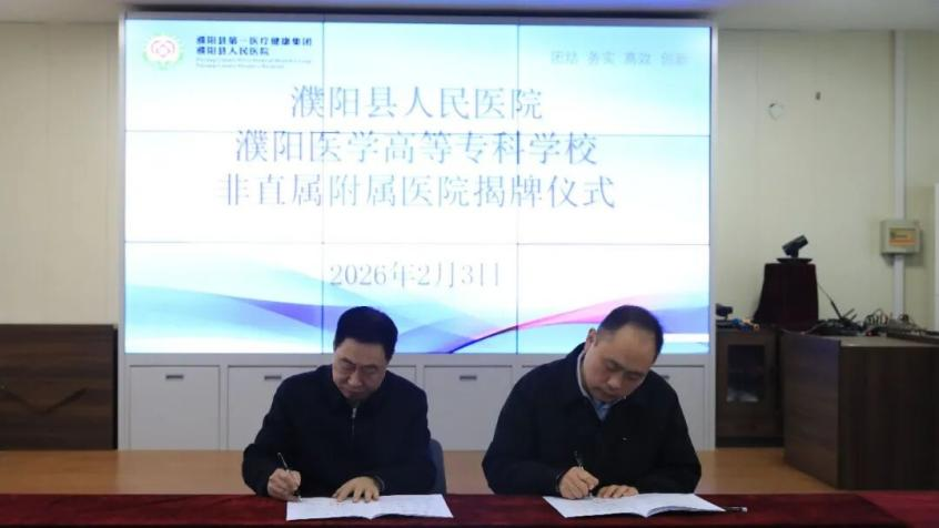 2026年2月3日,濮阳医学高等专科学校先后与濮阳县人民医院、濮阳县中医医院举行非直属附属医院揭牌仪式。副校长孟晓炜带队,相关部门负责人等参加活动。濮阳县人民政府副县长王相卿,县卫健委党组书记、主任甘文峰分别出席两家医院仪式。