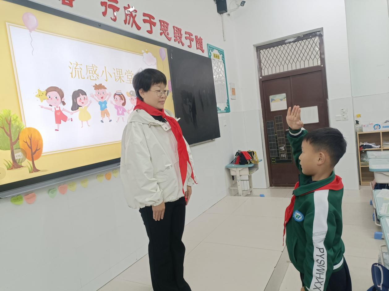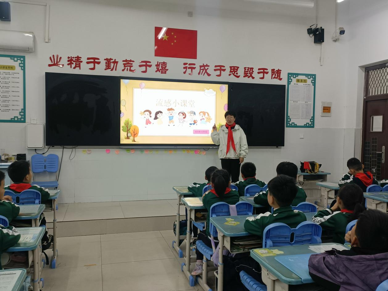 课堂上,胡湘萍结合儿童生理特点与生活场景,用浅显易懂的语言和生动的案例,向学生们讲解了流感的传播途径、典型症状与普通感冒的区别。