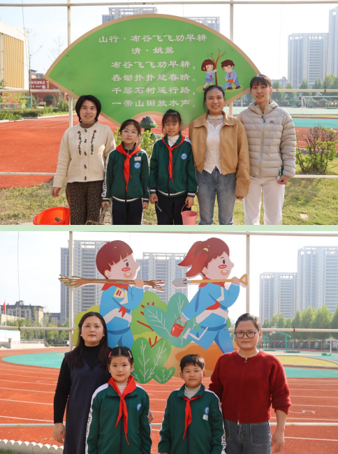 活动现场,大家分工明确、默契十足:有的弯腰翻地、疏松土壤,有的小心扶苗、精准播种,有的手持水壶、细心浇水。家长们耐心示范,学生们认真模仿,汗水浸湿了衣衫,却挡不住大家脸上的笑容,该劳动基地内处处是亲子协作、师生互动的温馨画面。