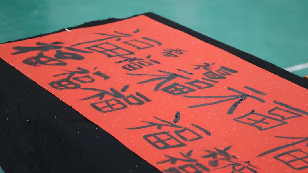 红宣铺地,墨色生香,百米长卷在校园中蜿蜒舒展,成为冬日里最亮眼的风景。四、五年级的学子们身着整齐校服,神情专注立于长卷两侧,手握毛笔,饱蘸浓墨,在老师的悉心指导下,认真勾勒着每一笔、每一划。落笔间,虽无炉火纯青的功底,却有着少年独有的认真与热忱,一个个形态各异的“福”字跃然纸上,或圆润饱满寓意团圆美满,或笔力稚嫩却尽显朝气。