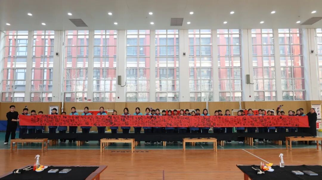 当最后一笔墨色收锋,这幅凝聚着四、五年级全体学子心血与祝福的百米福卷完美落成。长长的画卷上,墨色浓淡相宜,福韵满卷生辉,不仅定格了少年执笔的美好瞬间,更承载着学子们对新年的无限憧憬,对新学期的满心期许。