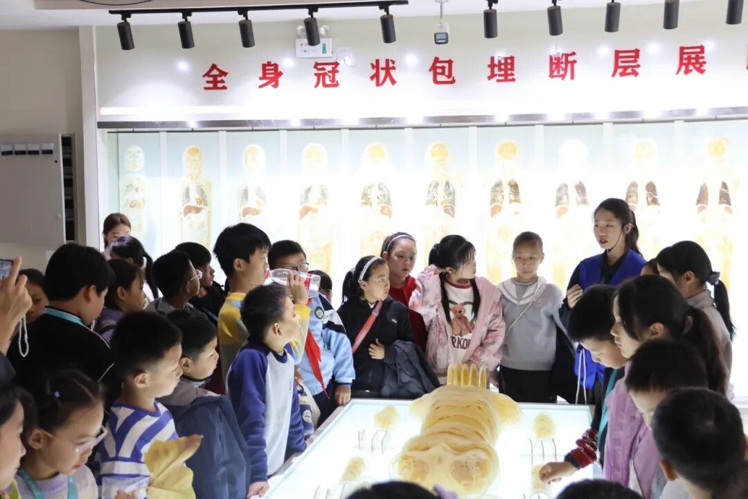 走进人体生命科学馆,小记者们肃然起敬。在基础医学教学部志愿者全程陪同讲解下,小记者依次参观了生命孕育区、人体各系统展区、断层标本区、虚拟仿真展区等,通过参观,复杂的人体结构变得清晰,不仅传播了医学知识,更在小记者心中种下了敬畏生命、爱护身体的种子。