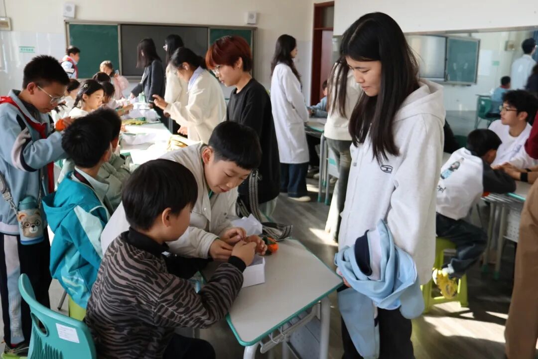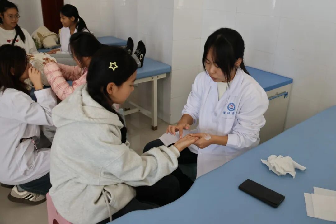 在中医实验室,中医学院教师和志愿者带领小记者们体验了艾灸的温热、推拿的舒络通经,亲手缝制了驱蚊防病的草药香囊,中医“治未病”的智慧,也从一句口诀变成了他们看得见、摸得着、闻得到的健康种子。