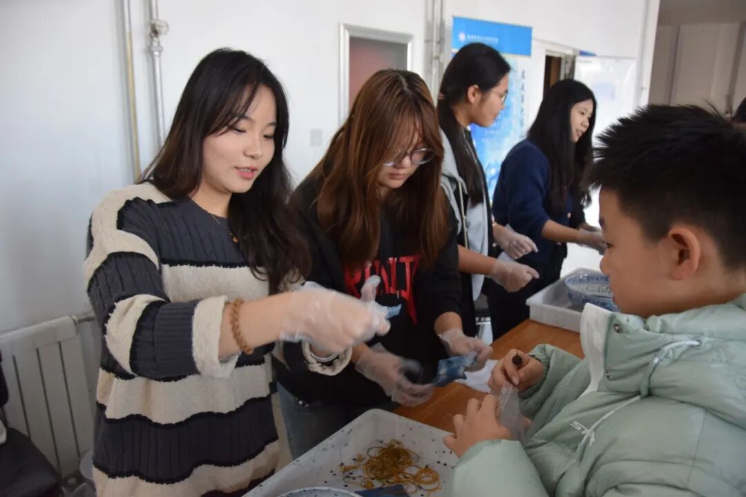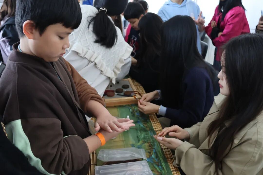 在非遗手工区,开展了一堂生动的美育实践课。公共教学部的老师讲解了扎染和制香的文化内涵。小记者们动手实践过程中,直观地感受到了中华优秀传统文化的魅力所在,真正实现了“以美育人、以文化人”的浸润式教育。