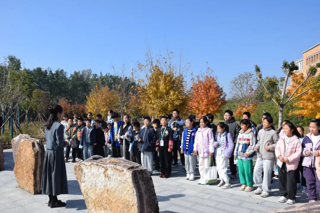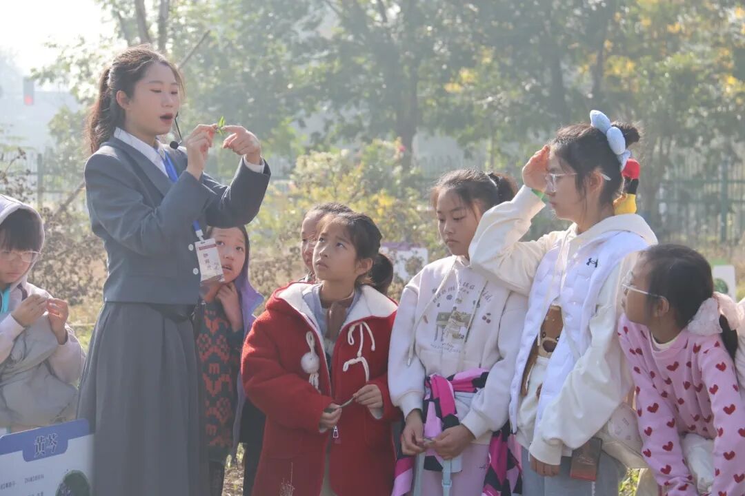 授牌仪式后,小记者们分成三支“探险小队”,分别在19名专业教师和72名学生志愿者的带领下,开始了他们的奇妙旅程。校园里瞬间充满了孩子们的欢声笑语。 在中华药物园,他们不再是看着图片认草药,而是亲眼见到、亲手触摸那些“会呼吸”的中药材。药学院志愿者们耐心讲解:“大家摸一摸白术,它气味清香,是健脾高手;再看盛开的金银花,它性寒,是我们生活中常用的清热良药。”通过亲眼观察、亲手触摸,小记者们懂得了这些植物为何能成为治病救人的“中药”,在真实的百草世界里,上了一堂最生动的自然课。