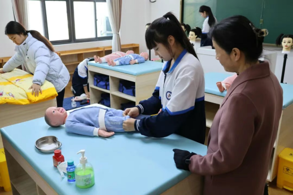调研小组采取“实地察看、听取汇报、讨论交流” 相结合的方式,全方位了解学校办学情况。调研过程中,调研小组实地考察了琴房、体育馆、心理咨询室、多功能微机房、幼教实训室、机器人实训室等教学场所,仔细查看实训设备配置与使用情况,现场观摩教师实操教学与学生技能训练过程,倾听师生对技能提升、未来发展的意见建议。