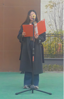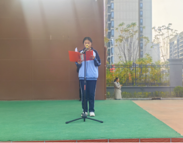 颁奖结束后,来自2班的优秀学生代表田圣囡上台发言。她分享了自己的学习方法与备考经验,表达了对学校、老师的感恩之情,同时号召全体同学以榜样为力量,查漏补缺、奋起直追。随后,优秀教师代表王妍妍结合九年级学业特点,为同学们提出了针对性的学习建议,鼓励大家在接下来的学习中坚定信念、脚踏实地,向着目标稳步前行。