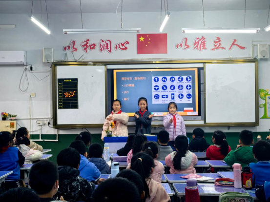 为了让学生更清晰地了解交通规则,班主任老师借助课件,通过图片、视频向学生讲解交通规则、交通标识。学生认真聆听,积极讨论自己所认识的交通标识,与同学积极交流识记小妙招。在“交通安全知识问答”环节,大家踊跃抢答,从“12岁以下能否骑自行车上路”到“如何识别交通标志”,现场气氛热烈。一名同学感慨:“以前觉得戴头盔麻烦,现在才知道它能保护生命!”