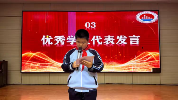 张海高校长的致辞更是语重心长,既为获奖的师生感到骄傲,也向全体五年级同学提出了以榜样为镜、以品德为根、以奋斗为笔的三点期望,鼓励大家胜不骄、败不馁,用不懈努力书写成长答卷。