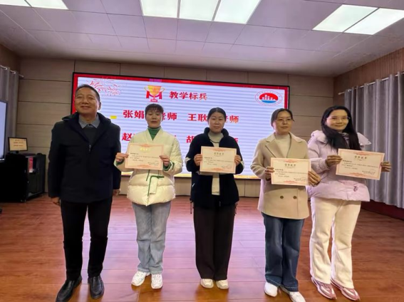 张海高校长为教学标兵颁奖,见证匠心育人风采。张娟娟、王耿红、赵晓青、胡琳琳四位教师凭借深耕教学、巧思课堂的扎实表现,荣获“教学标兵”称号。她们用专业与热爱护航学生成长,校长的颁奖既是对这份坚守的认可,更是对全校教师潜心育人的激励。