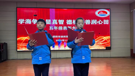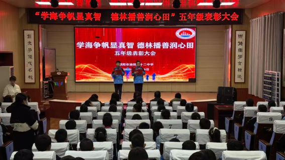 2025年11月28日,濮阳市油田第十二中学的校园里洋溢着喜悦与荣光,一场由学生主持,以“学海争帆显真智 德林播善润心田”为主题的表彰暨学习经验交流大会如约而至。全体五年级师生齐聚一堂,为收获成长的学子喝彩,为辛勤耕耘的教师致敬,也为接下来的学习征程蓄力扬帆。