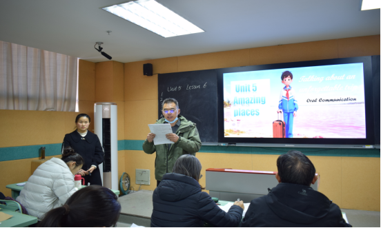 激活旅行相关生活体验,以“观看图片+情景导入,涵盖轻松氛围,为课堂作铺垫,板书设计图文结合,相得益彰,语言生动,表情自然,教态亲切,用便签纸拆分旅行关键要素,既活泼又不干扰信息传递,为学生的语言输出提供了很好的示范。王怀杰老师在《unit 5 Love Mother Nature! Function Facts about Deserts》中以“唐僧师徒”等学生熟悉的文化符号设计互动开场,既贴合单元主题,又增强了学习的趣味性与代入感,同时老师的语言诙谐有趣,很好吸引学生的注意力。王伟伟老师同课异构《unit 5 Love Mother Nature! Function Facts about Deserts》,立足学生实际,以情景为依托、以任务为驱动、以评价为导向,让学生在沉浸式体验中夯实语言基础、提升综合能力。这种“因材施教、学用结合”的教学思路,值得在日常英语教学中大力借鉴。