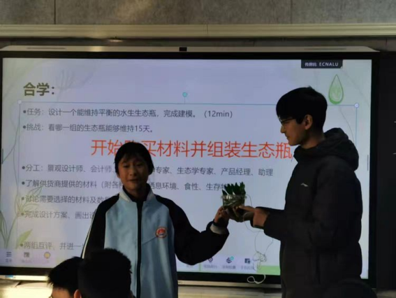 学生在生态瓶成果展示中切实做到了通过合作激发思维,锻炼了思考能力、逻辑能力及语言表达能力,使每一位学生都能自信地“开口”说出自己的想法。