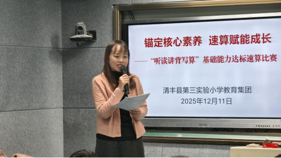 为深入落实市、县教育局关于“听读讲背写算”基础能力培养的工作要求,切实提升学生数学核心素养,近日,清丰县第三实验小学教育集团精心组织了“听读讲背写算”基础能力达标速算比赛。本次比赛以“锚定核心素养,速算赋能成长”为主题,通过科学有序的活动安排,为学生搭建了展现计算能力、比拼数学思维的良好平台。