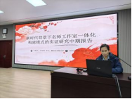 在汇报环节,三位汇报人依次上台,围绕研究进展、阶段性成果、存在问题及下一阶段计划进行了详细阐述。闫昱臻老师代表名校长课题组首先汇报,李婉婉老师、宋小杰老师也分别结合学科特点与实践案例,展示了扎实的研究过程与初步成效。