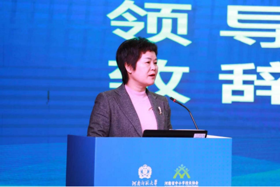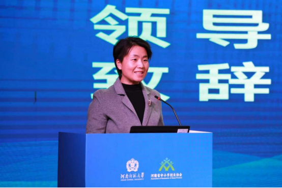开幕式由濮阳市教育局一级调研员孙腾海主持,三项议程高效凝聚共识。濮阳市教育局局长杜晓玲致辞,介绍濮阳教育在资源布局、师资建设、质量提升等方面的现状,对河南师范大学、中小学校长协会的主办支持及濮阳市实验中学的承办保障表示感谢,同时明确本次活动为濮阳教育赋能、推动其高质量发展的核心意义。