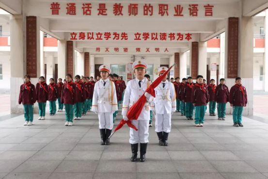 五(8)中队队员代表徐思思站在国旗下,道出了少年的赤诚誓言。话语之中,满是对毛主席带领先辈缔造新中国的感念,那是用拼搏换来的温暖家园,用奋斗铺就的求学坦途,才让我们能安坐教室、沐光成长;满是少年对传承伟人精神的坚定决心:当以毛主席为榜样,学他爱读书、乐助人、勇克难的品格,从做好每一件事开始锤炼自己,怀“请党放心,强国有我”的初心,以少年之力护祖国山河、建盛世中华。