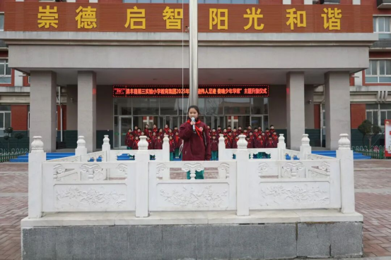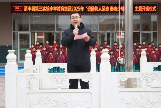 风展红旗,少年意气正扬;薪火相传,精神永续华章。这场主题升旗仪式,既是一次跨越时空的精神对话,更是一堂浸润心灵的红色启蒙课。从猎猎国旗中,读懂先辈的赤胆担当;从铿锵誓言里,看见少年的蓬勃力量。愿清丰县第三实验小学教育集团的学子们,以伟人为帆,以信仰为桨,在追梦航程中乘风破浪、奋勇争先,以今朝少年的凌云之志,续写明日盛世的璀璨篇章!