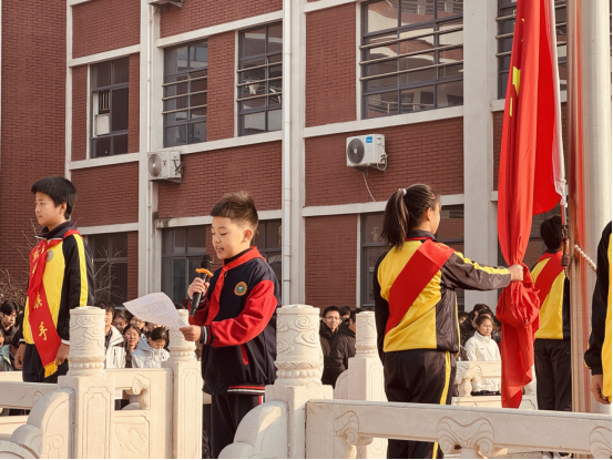 国旗下的庄严誓言,筑牢信仰之基。周一的清晨,伴随激昂的《义勇军进行曲》,五星红旗在校园冉冉升起。在庄严的国旗下,学生代表范丁澍以“汲取奋进力量,担当时代使命”为主题发表了热情洋溢的讲话。讲话回顾了党领导人民取得的辉煌成就,阐述了新时代学子肩负的历史责任,勉励全体同学将个人理想融入国家发展伟业,坚定理想信念,锤炼过硬本领,以饱满的热情和昂扬的姿态迎接新的一年。铿锵誓言回荡在校园上空,爱党爱国爱社会主义的种子深深植根于学子心田。