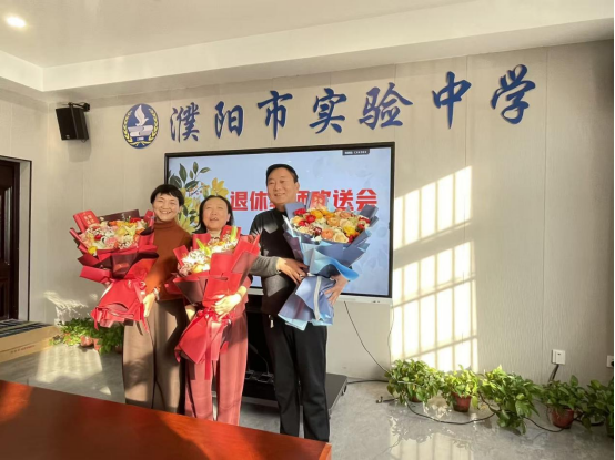 2026年1月6日下午,濮阳市实验中学一楼会议室暖意萦怀,2025 年度退休教师欢送会在此温情启幕。学校领导班子与教职工代表齐聚一堂,为石桂峰副校长、骆建立主任、宗利老师三位光荣退休的教育工作者送上敬意与祝福,因事未到场的梁素霞、刘新昉、魏静林、朱玉荣四位退休教师也收到了现场的远程祝愿。