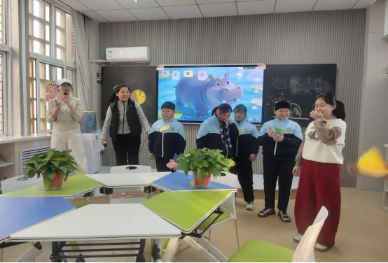 彩虹色的花社团的同学们将经典绘本搬上展示舞台,用稚嫩的语言、生动的动作演绎剧情。同学们沉浸在角色中,用专注的神情、灵巧互动,让绘本故事活了起来,不仅展现了阅读成果,更在表演中学会了分享与善良。