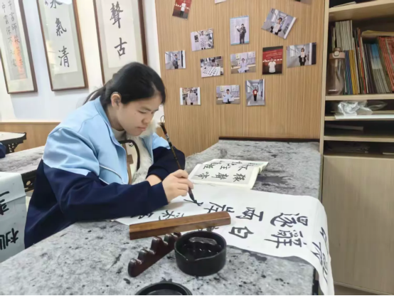 笔墨飘香润心灵,横竖撇捺见功夫。笔耕轩书法社团的同学们坐姿端正,握笔规范,一笔一划书写汉字之美。