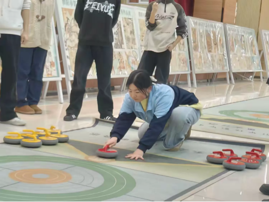 冷静思考,默契配合,旱地冰壶社团上演一场靠智慧决胜的趣味比拼!同学们专注观察场地,精准投掷冰壶。从战术讨论到团队协作,每一个环节都考验着彼此的默契与智慧,展现了旱地冰壶社团的拼搏精神与团队凝聚力。