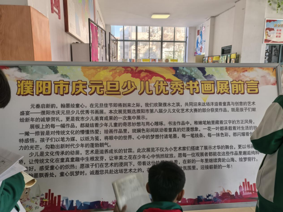 本次巡展展出的作品,均从大赛静态类参赛作品中严格遴选而出的精品力作,涵盖书法、绘画等多个艺术门类。作品题材丰富多元、风格迥异鲜明,集中展现了濮阳市少年儿童扎实的艺术功底与饱满的创作热情。展览现场,美术教研组教师化身专业讲解员,结合自身扎实的专业知识储备,以深入浅出的方式为学生们解析作品的创作构思、色彩搭配逻辑、笔墨运用技巧等专业要点,同时生动分享作品背后蕴含的文化内涵与创作故事,引导学生掌握艺术欣赏方法,帮助大家深刻理解作品的艺术价值,在潜移默化中传递正确的审美理念。